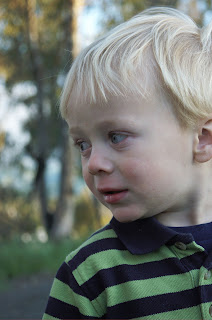 Shelby and Tristan wanted to go for a ride in the wagon. Tristan sat so sweetly while Shelby made funny faces, kicked his feet and waited for a reaction. Nothing from Tristan, but he wasn't counting on Mommy's reaction at his behavior...